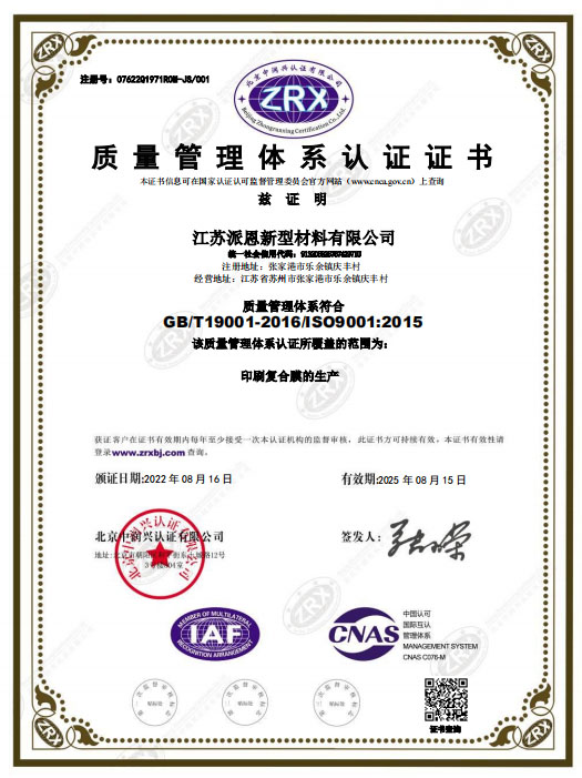 质量管理体系证书